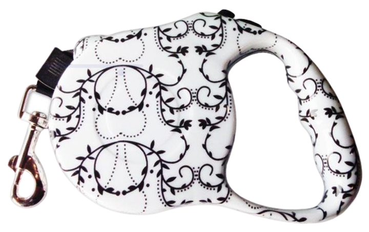 Поводок-рулетка для собак Рожеві лапки вага до 15 кг довжина 5 м білий з принтом лапок