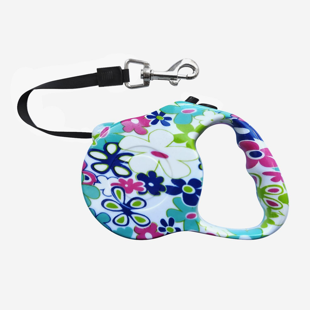Поводок-рулетка для собак до 15 кг довжина 5м з квітковим принтом