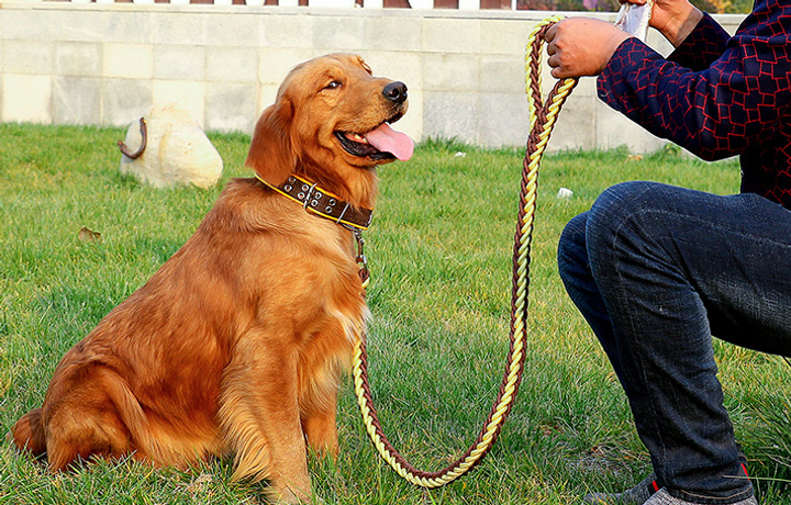 Комплект повідець та нашийник для собак №3 довжина 1.3 м, ширина 2см на 51-64см коричнево-жовтий