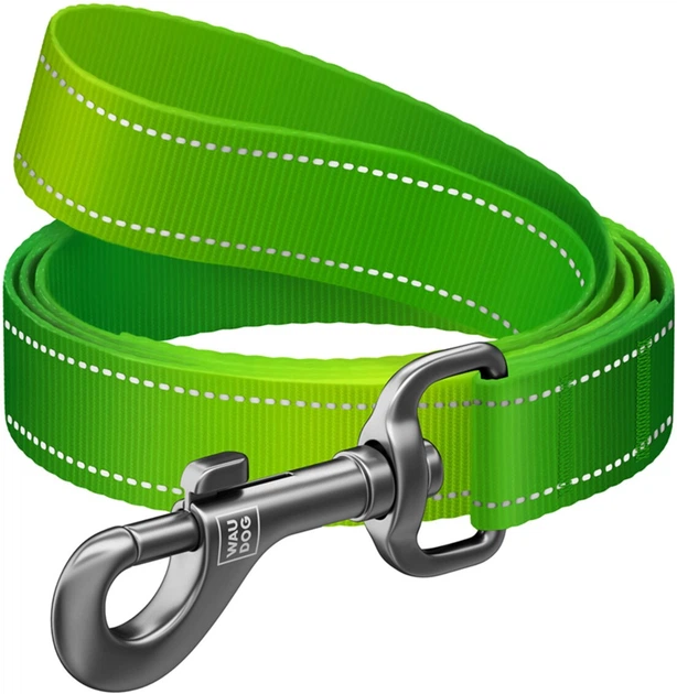 Повідець для собак нейлоновий WAUDOG Nylon Mono світловідбиваючий L-XXL 25 мм 122 см Салатовий (52195Collar)