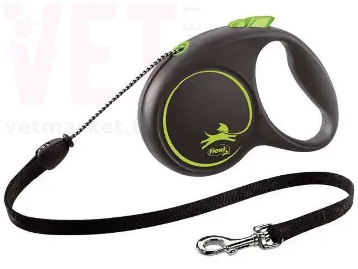Повідець-рулетка для собак 12кг Flexi Black Design S зелений, трос - 5м