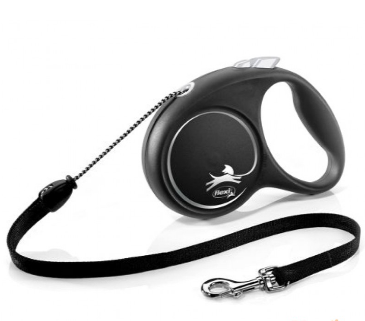 Повідець-рулетка для собак 12кг Flex Black Design S сріблястий, трос - 5м