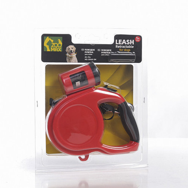 Повідець-рулетка для собак ZooMax до 25 кг червона стрічка 5м