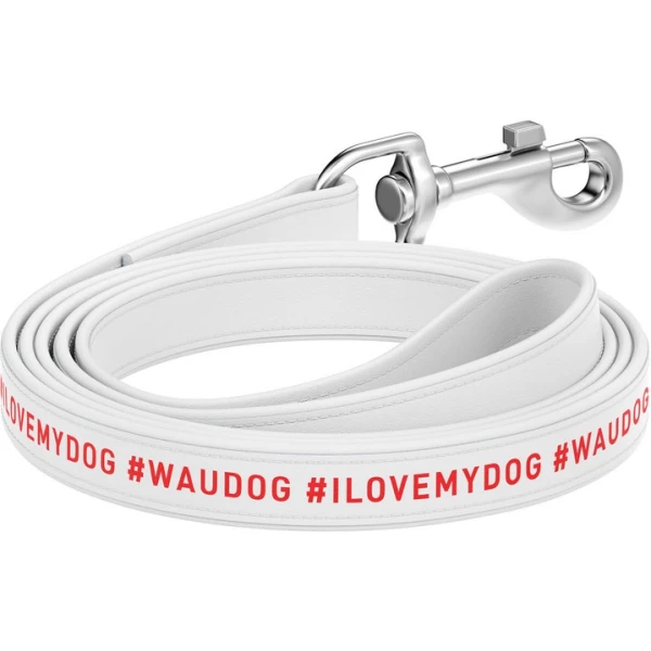 Повідець для собак шкіряний WAUDOG Design, малюнок "я люблю свого собаку", Ш 25 мм, Дл 122 см білий(4823089310619) Акція!