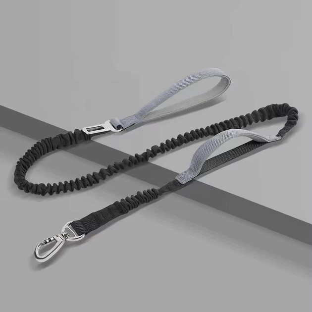 Повідець для собак з подвійним амортизатором та автомобільним кріпленням в чорний