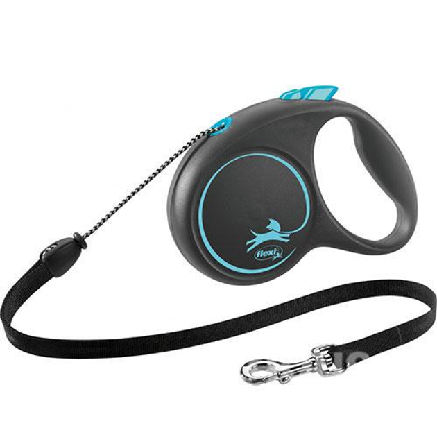 Flexi Black Design S- повідець-рулетка для собак вагою до 12 кг, трос, 5 м синій