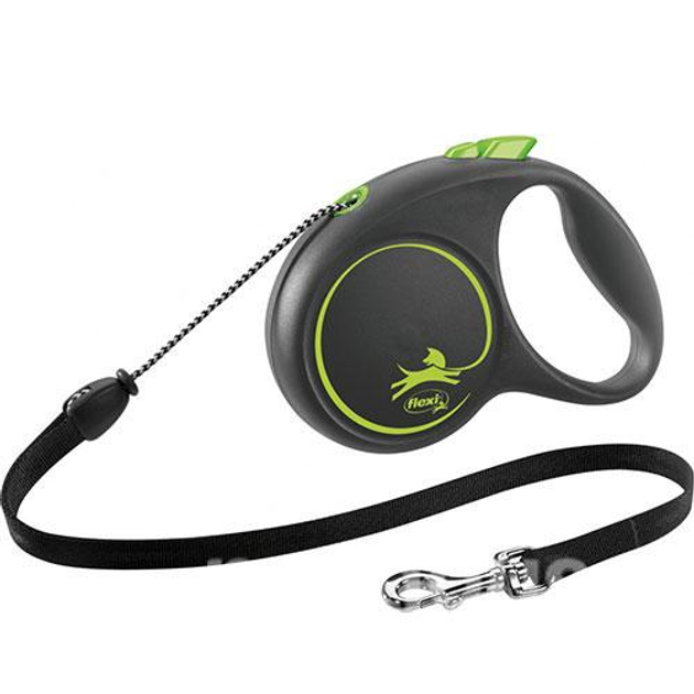 Flexi Black Design S - повідець-рулетка для собак вагою до 12 кг, трос, 5 м, зелений