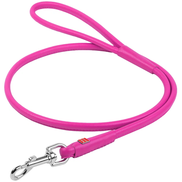 Круглий шкіряний повідець для собак WAUDOG Glamour 122 см 6 мм Рожевий (33807)