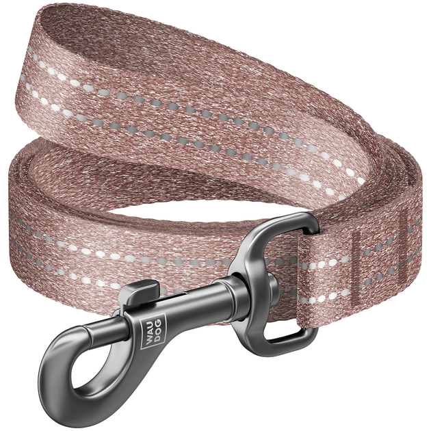 Повідець для собак із відновленого бавовни WAUDOG Re-cotton світловідбиваючий, M, Ш 20 мм, Д 500 см коричневий
