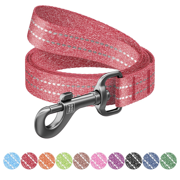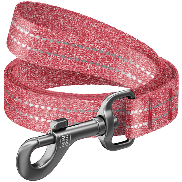 Повідець для собак із відновленого бавовни WAUDOG Re-cotton світловідбиваючий, M, Ш 20 мм, Д 500 см червоний