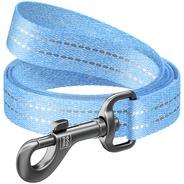 Повідець для собак з відновленої бавовни WAUDOG Re-cotton світловідбиваючий, M, Ш 20 мм, Д 500 см блакитний