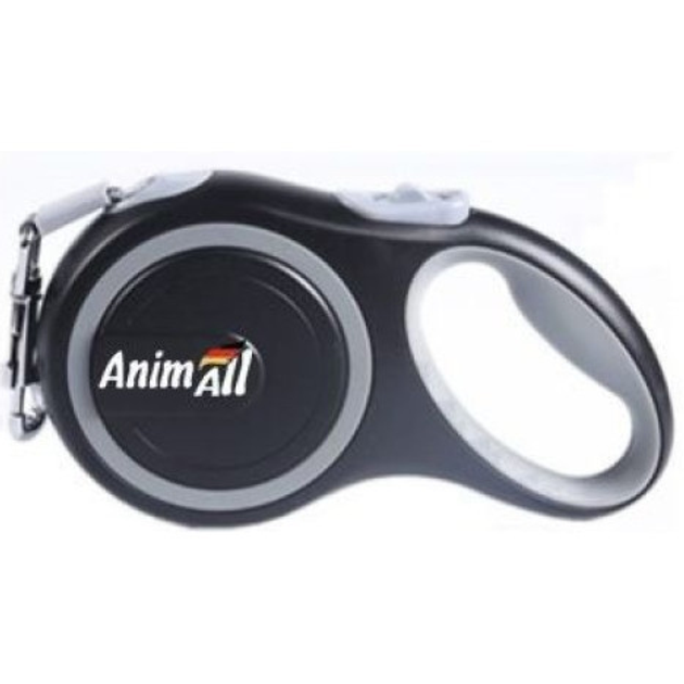 Поводок-рулетка AnimAll для собак вагою до 25 кг, 5 м, M сіро-чорний, Енімал