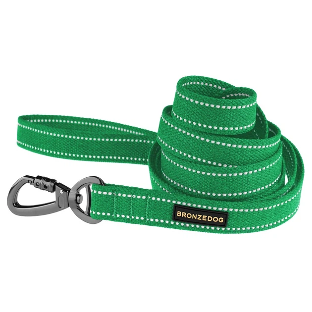 Повідець Собак Bronzedog Сotton Рефлекторний х/б Брезент Смарагдовий 20 мм 300 см (61313)
