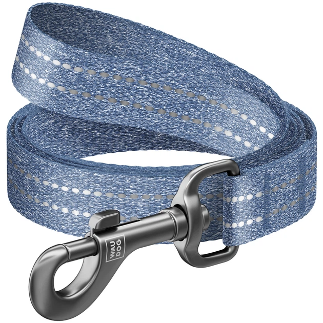 Повідець для собак з відновленої бавовни WAUDOG Re-cotton світловідбивний, Ш 20 мм, Дл 300 см, синій