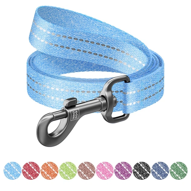 Повідець для собак з відновленої бавовни WAUDOG Re-cotton світловідбиваючий, S, Ш 15 мм, Д 150 см блакитний