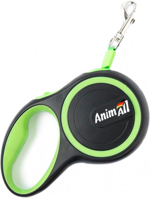 Поводок-рулетка AnimAll для собак вагою до 25 кг, 5 м, M салатово-чорний, Енімал