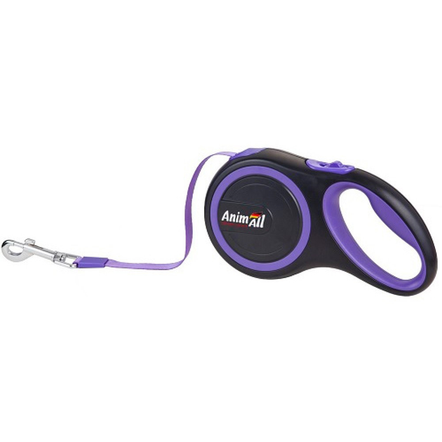 Поводок-рулетка AnimAll для собак вагою до 25 кг, 5 м, M фіолетово-чорний, Енімал