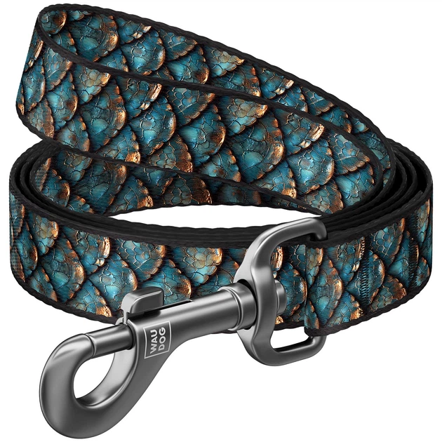 Повідець для собак нейлоновий WAUDOG Nylon, малюнок "Луска", розмір M, 300 см, 20 мм