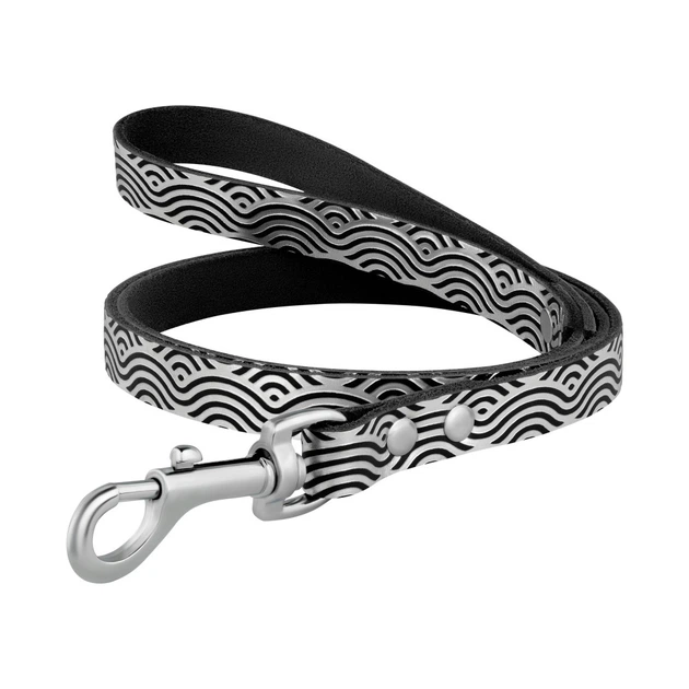 Повідець для Собак Шкіряний Classic Одинарний з Срібним Тисненням Хвиля Чорний 16 мм 122 см (571611)