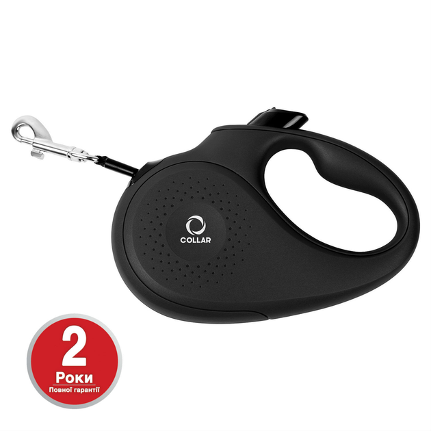 Повідець-рулетка CoLLaR для собак, розмір S, 15 кг, 5 м, стрічка чорний