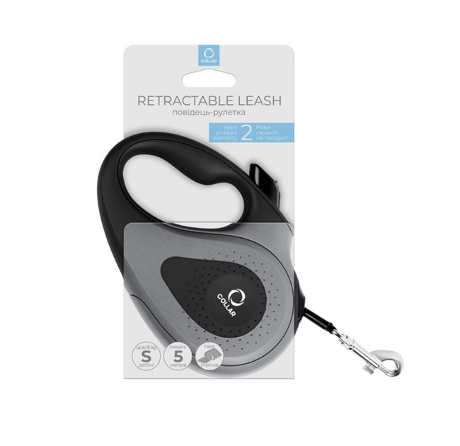 Повідець-рулетка COLLAR для собак до 15 кг, розмір S, 5 метрів, Чорний (81241)