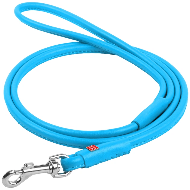 Круглий шкіряний повідець для собак WAUDOG Glamour 183 см 8 мм Блакитний (34392)