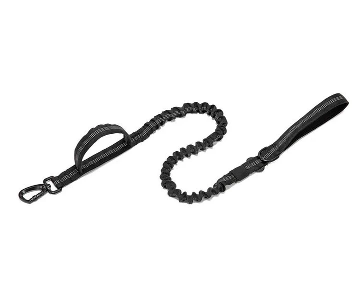 Повідець для собак 105-140 см, з автомобільним ременем безпеки, банджі-повідець з двома ручками, Чорний (230-BLACK)