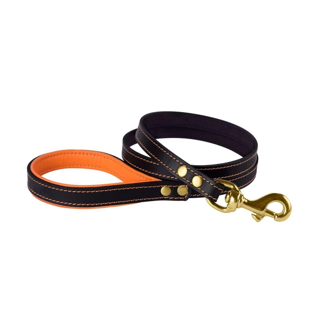 Повідець для Собак Шкіряний Barksi BronzeDog Premium з Литою Латунною Фурнітурою Чорно-Оранжевий L(47204/Т)