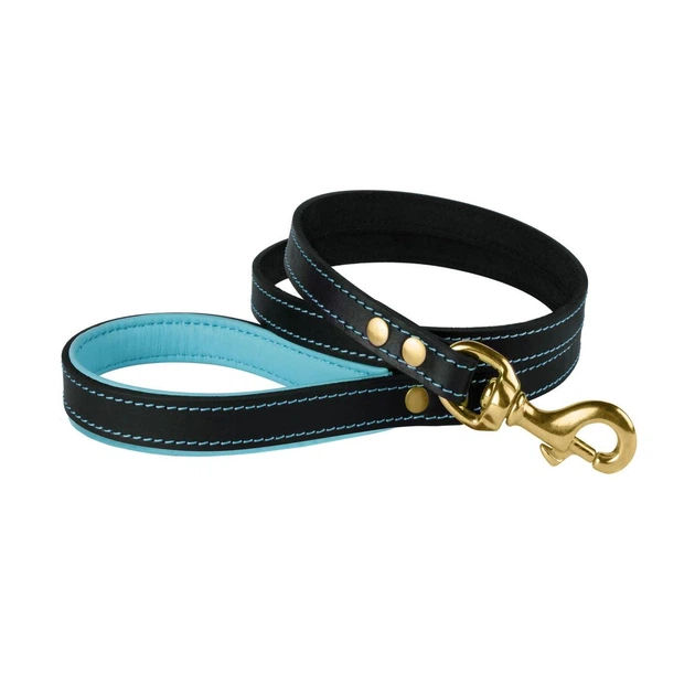 Повідець для Собак Шкіряний Barksi BronzeDog Premium з Литою Латунною Фурнітурою Чорно-Блакитний L(47202/Т)