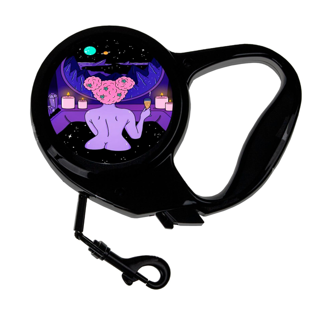 Повідець-рулетка для тварин із принтом дівчина у космічній ванні 3 м чорний
