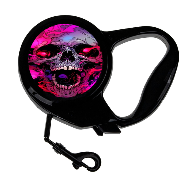 Повідець-рулетка для тварин із принтом череп та рожевий дим 3 м чорний
