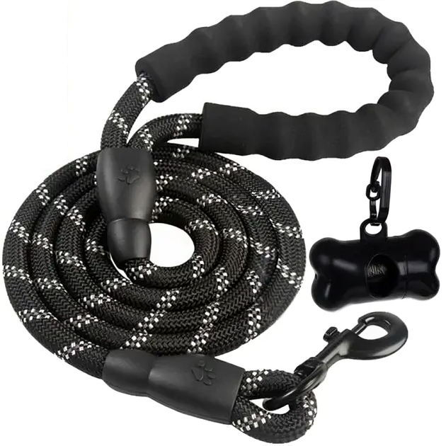 Світловідбивний повідець для собак з контейнером для пакетів ручкою з піни металевим карабіном 5 м (481404-Prob)