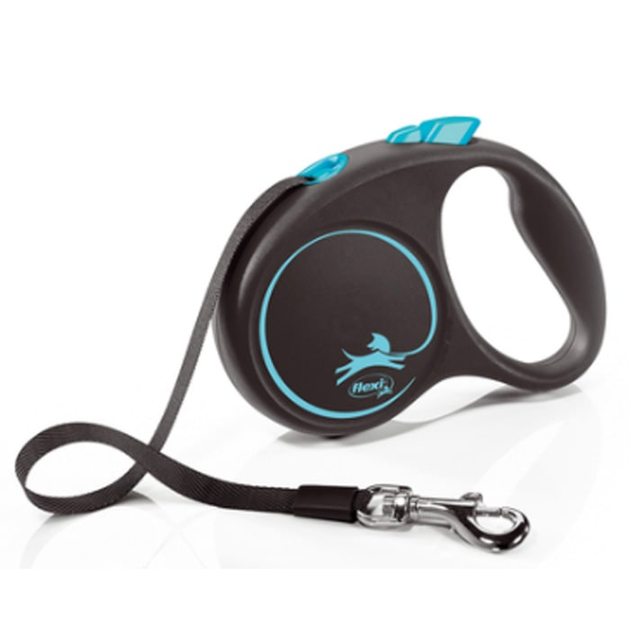 Flexi (Флексі) Black Design M — Повідець-рулетка для собак середніх порід, трос (5 м, до 20 кг) синій