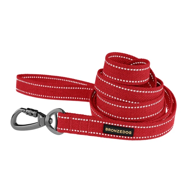 Повідець Для Собак Bronzedog Сotton Рефлекторний х/б Брезент Червоний 32 мм 300 см (63333)