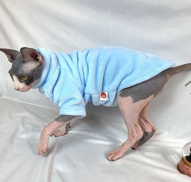 Толстовка флісова для котів (кішок) Оксамит L Блакитний
