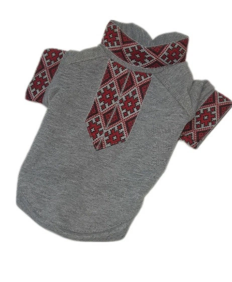 Футболка для собак вишиванка сіра з червоним XXS 20х32 см