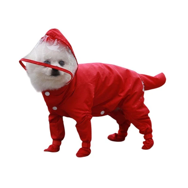 Дощовик для собак цільний з капюшоном розмір L довжина спинки 35 см обхват грудей 44 см червоний
