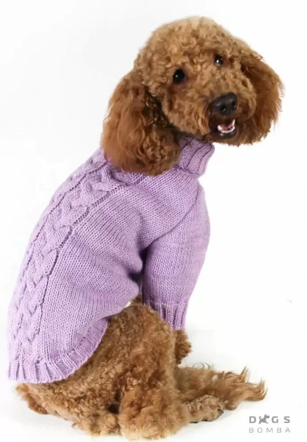 Светр в'язаний косичка 35 см (об'єм до 52см) розмір 6 лаванда для собак S