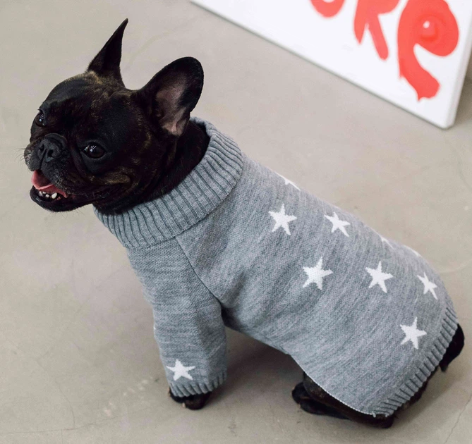Светр для собак Dogs Bomba в'язаний Зiрочки сiрий Y-329 7 р.