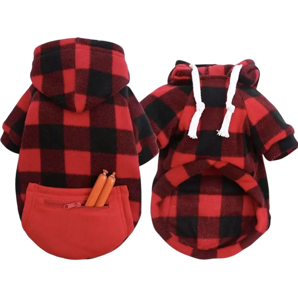Худі Ginger для тварин 5/XL Клітинка з кишенею червоне
