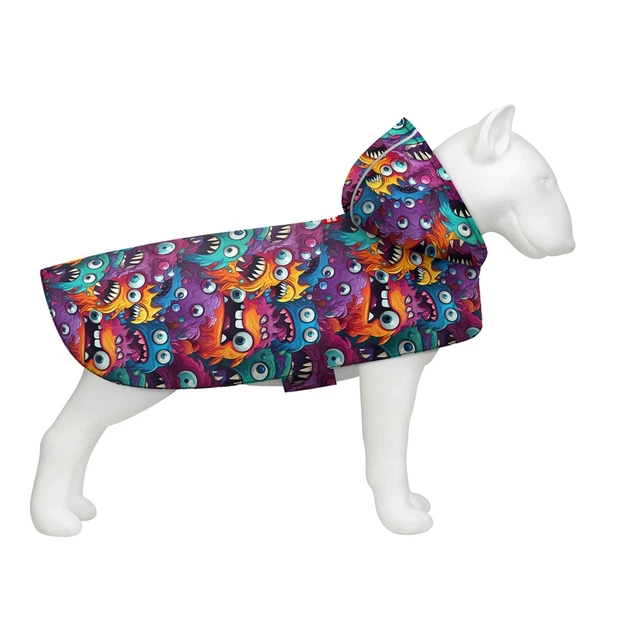 Дощовик-накидка для собак WAUDOG Clothes Волохаті монстри, мультиколор, з капюшоном, розмір L (довжина 48–52 см; шия 42–52 с
