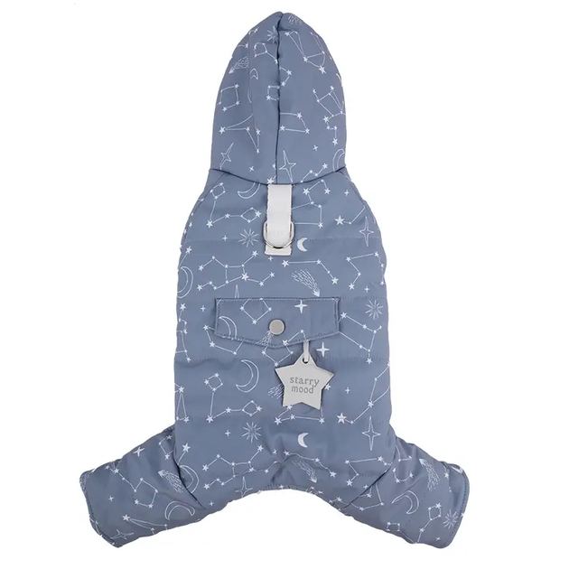Теплий зимовий комбінезон з колечком для карабіна синій із зірками розмір L