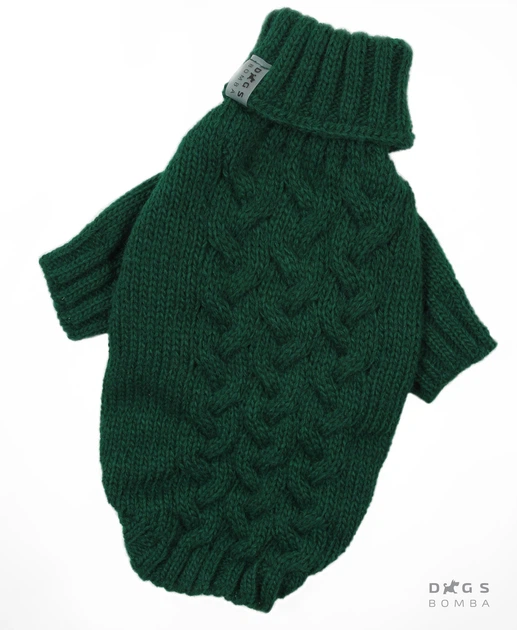 Светр в'язаний косичка 27 см (об'єм до 35см) розмір 2 смарагд для собак XS