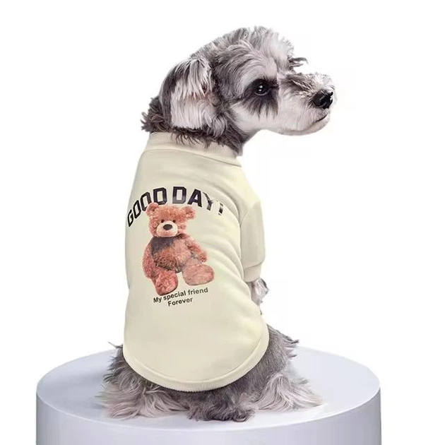 Светр для собак та котів Ведмедик розмір XL довжина спини 40 см обхват грудей 50 молочний з принтом