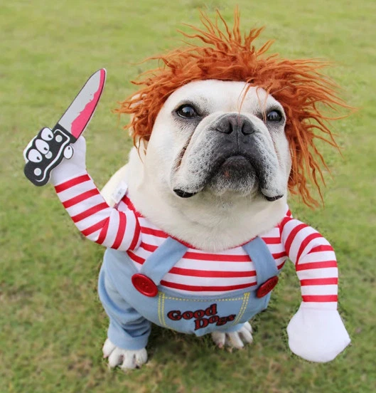 Костюм для домашніх тварин RESTEQ, костюм для собак Чакі розмір L — вбрання для пса у стилі персонажа фільму жахів, оригінал