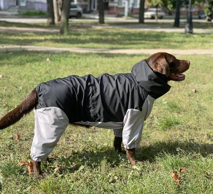 Комбінезон - дощовик 55 см (об'єм до 82см) чорний з сірим розмір 10 для собак L