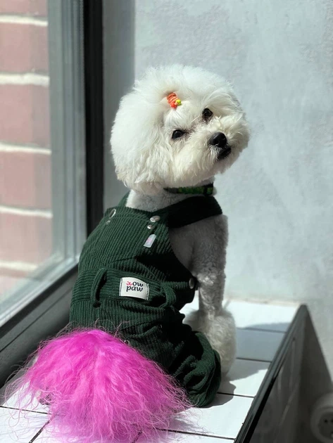 Вельветові штанці комбінезон для собак Вельвет зелений XS