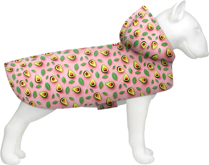 Дощовик-накидка з капюшоном для собак WAUDOG Clothes, малюнок "Авокадо на рожевому", L, А 48-52 см, B 60-70 см, С 42-52 см (