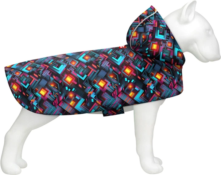 Дощовик-накидка з капюшоном для собак WAUDOG Clothes, малюнок "Блоки", L, А 48-52 см, B 60-70 см, С 42-52 см (358-4056)