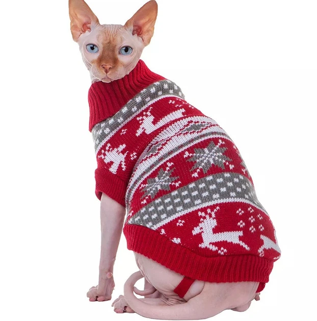 Светр для котів (кішок) Новорічний Олень XL Сірий
